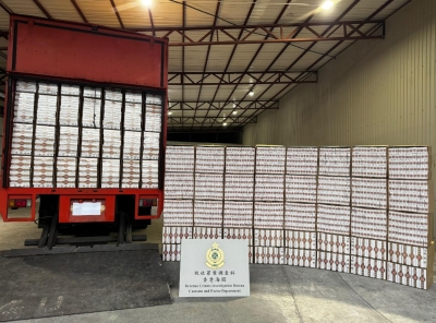 香港海關9日在粉嶺搗破兩個懷疑私煙貯存倉庫,共檢獲超過880萬支懷疑私煙,估計市值共約3970萬港元,應課稅值約2910萬港元,並拘捕一名懷疑涉案男子。