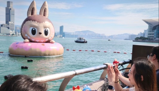 香港“維港海上大巡遊”今日(25日)揭幕,4個巨型充氣公仔,包括多啦A夢、KAWS & 芝麻街(Elmo)、滑嘟嘟及 LABUBU 今起在維港展出,並將於11月1日舉行“海上大巡遊”。