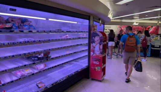 9月23日下午2時20分,香港天文台正式發出八號西北烈風或暴風信號。記者走訪港島商鋪及超市,有Taste店員對記者表示,今天已經空的部分貨架暫時就沒有貨源可以供貨。