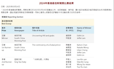 2024年香港最佳新聞獎名單公佈