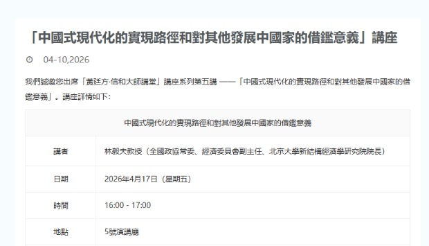 林毅夫將於香港珠海學院開講 探討中國式現代化實現路徑