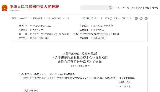 據中國財政部網站21日消息,為進一步規範政府和社會資本合作(PPP)存量項目建設和運營,提升項目運行質量和效益,持續提升公共服務供給水平,推動經濟社會平穩健康發展,中國財政部會同有關部門研究起草了《關於規範政府和社會...