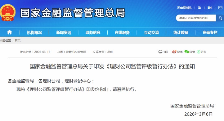 中國國家金融監管總局近日發布並施行《理財公司監管評級暫行辦法》(以下簡稱《辦法》),對理財公司監管評級的總體要求、評級要素、基本程序和分類監管等作出規定。