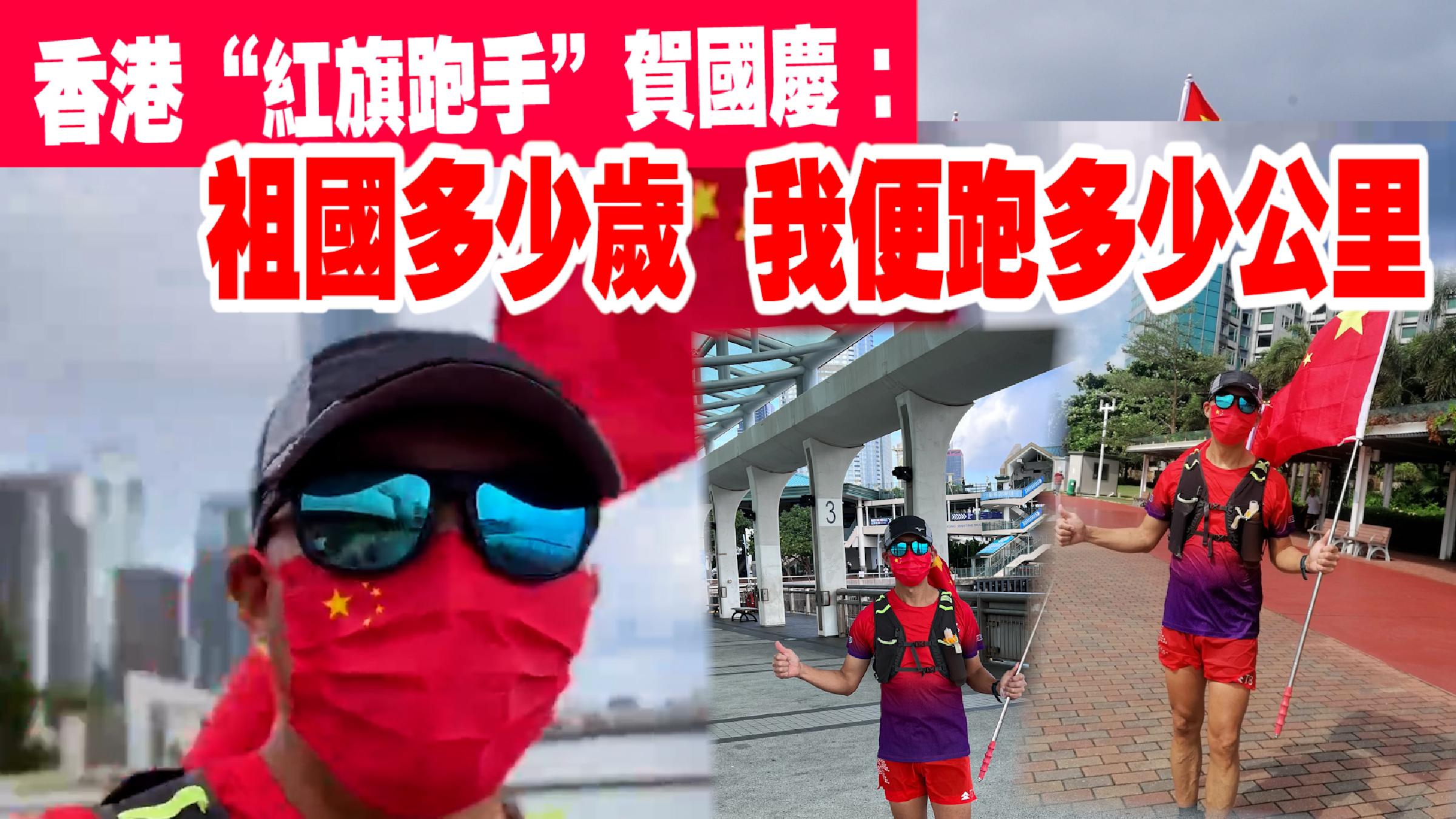 香港“紅旗跑手”背國旗跑遍香港:祖國多少歲 我跑多少公里