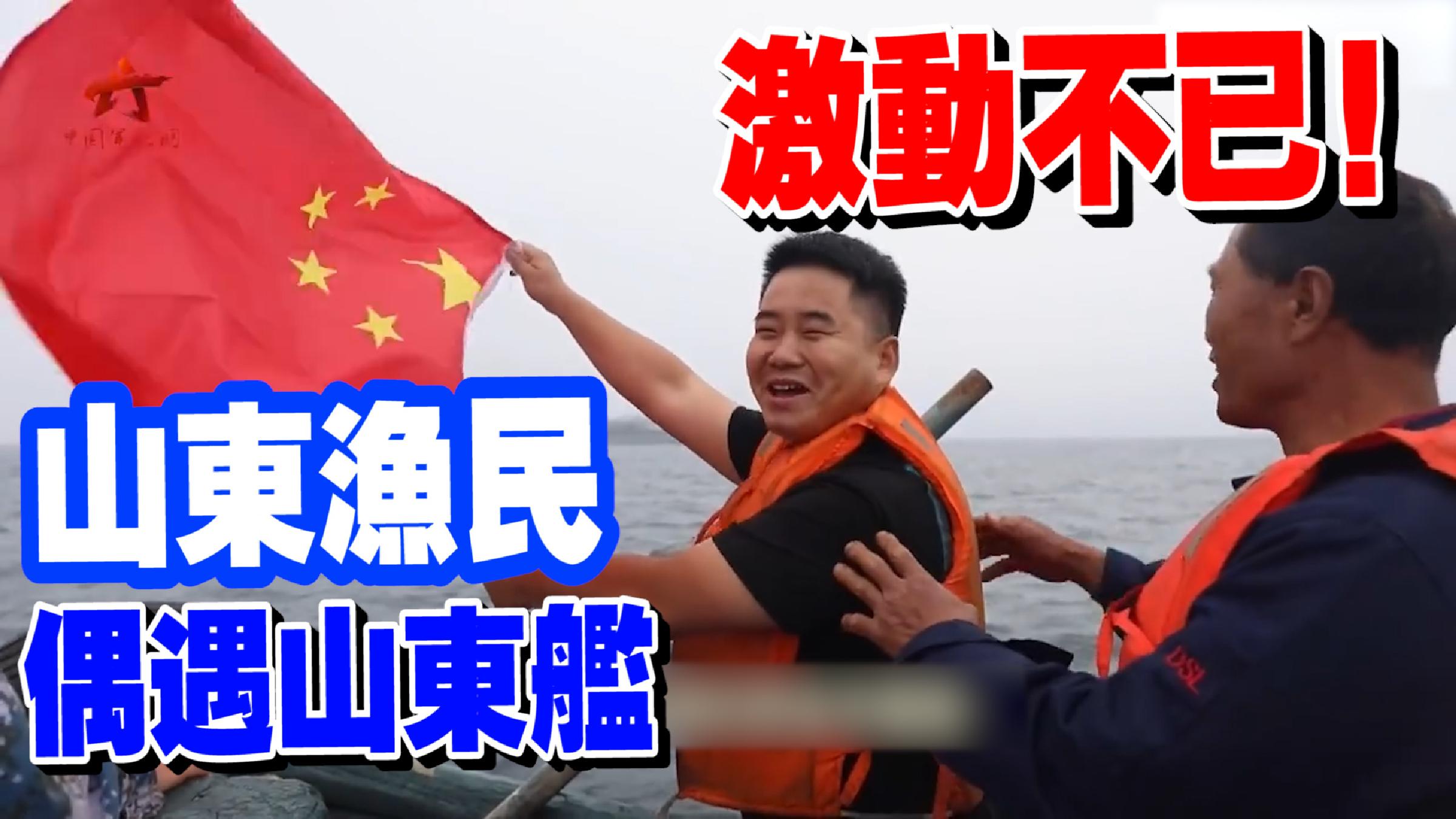 激動自豪!山東漁民偶遇山東艦激動揮舞國旗