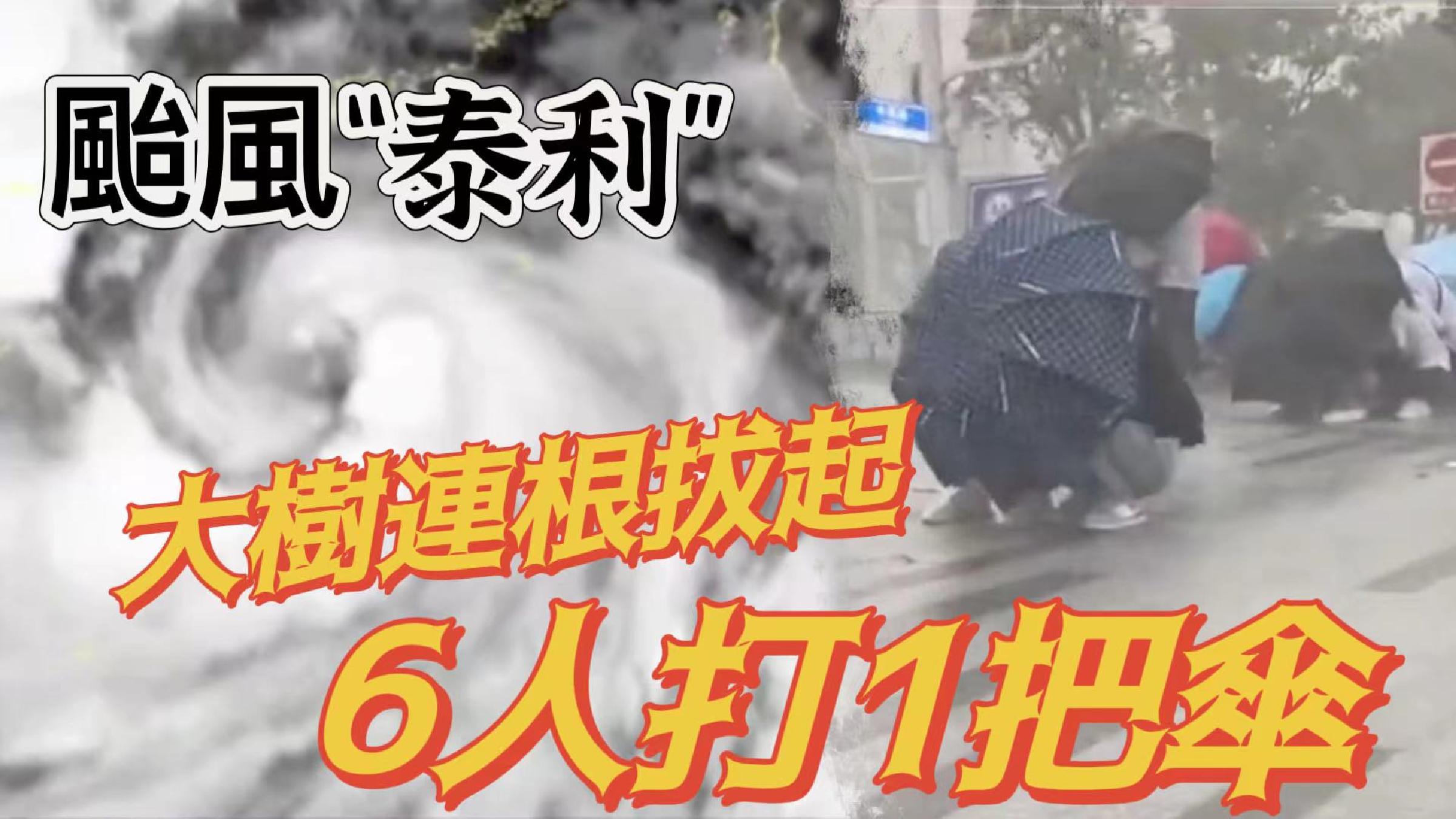 颱風“泰利”過境|6人打1把傘 大樹連根拔起