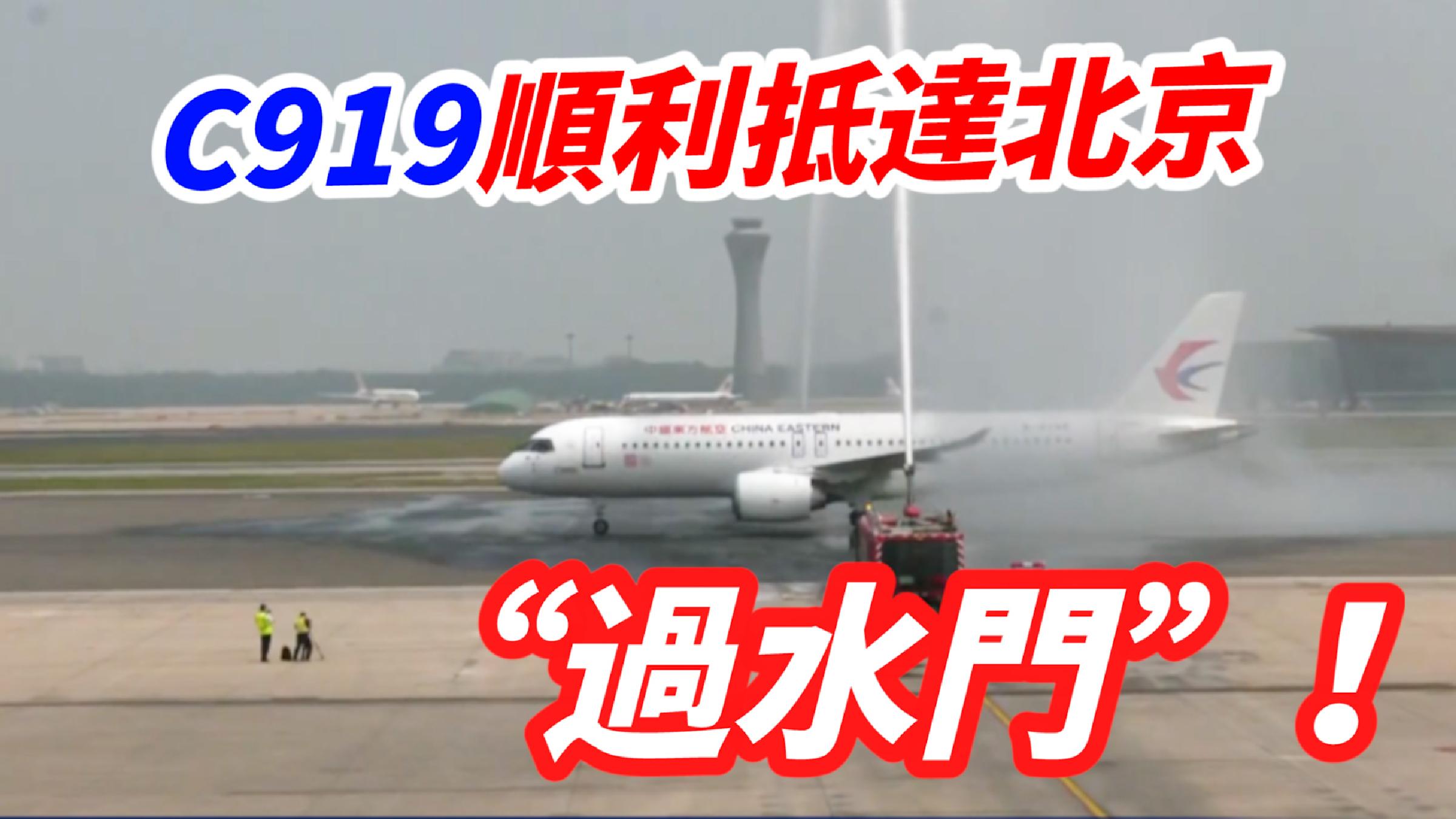 國產C9199大型客機順利抵達北京 進行“過水門”儀式