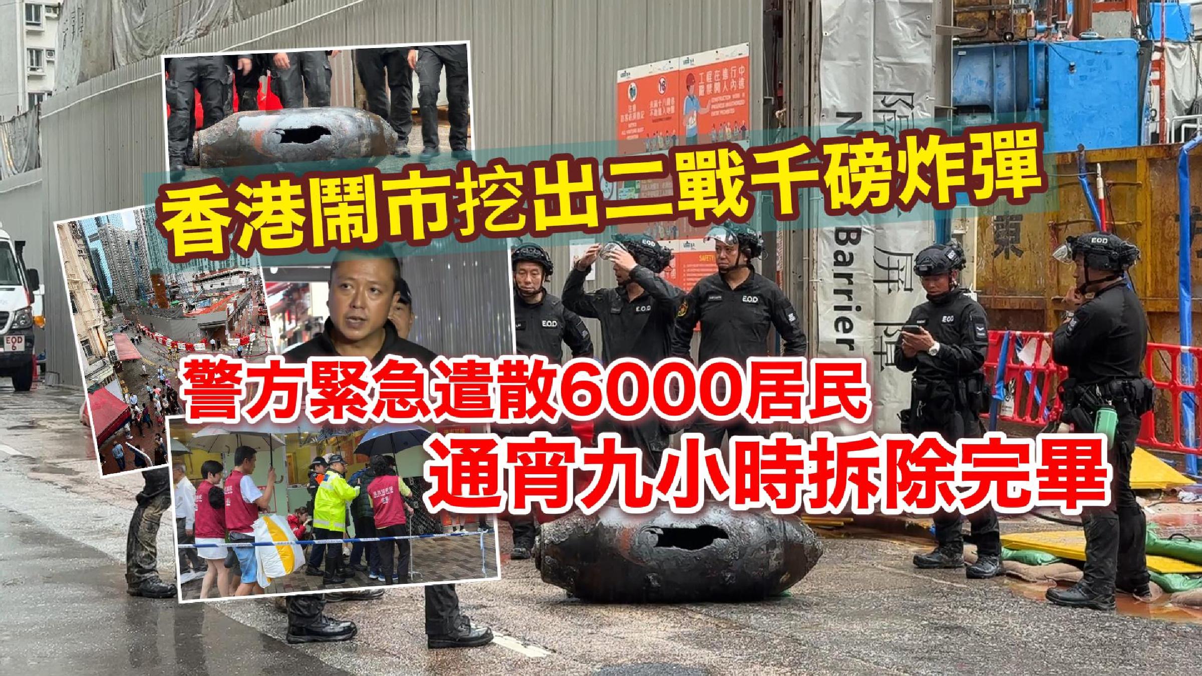 香港鬧市挖出二戰千磅炸彈 警方緊急遣散6000居民 通宵九小時拆除完畢