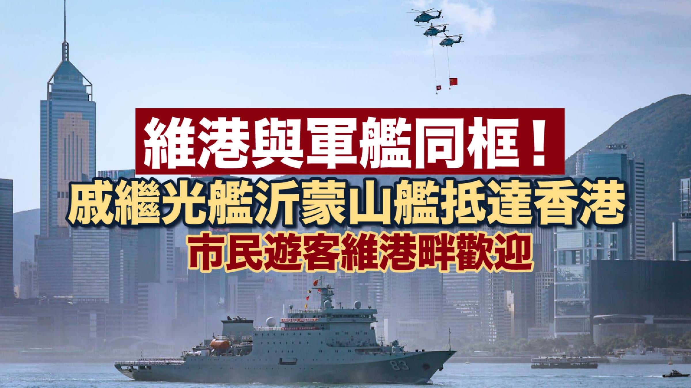 維港與軍艦同框!戚繼光艦沂蒙山艦抵達香港 市民遊客維港畔歡迎