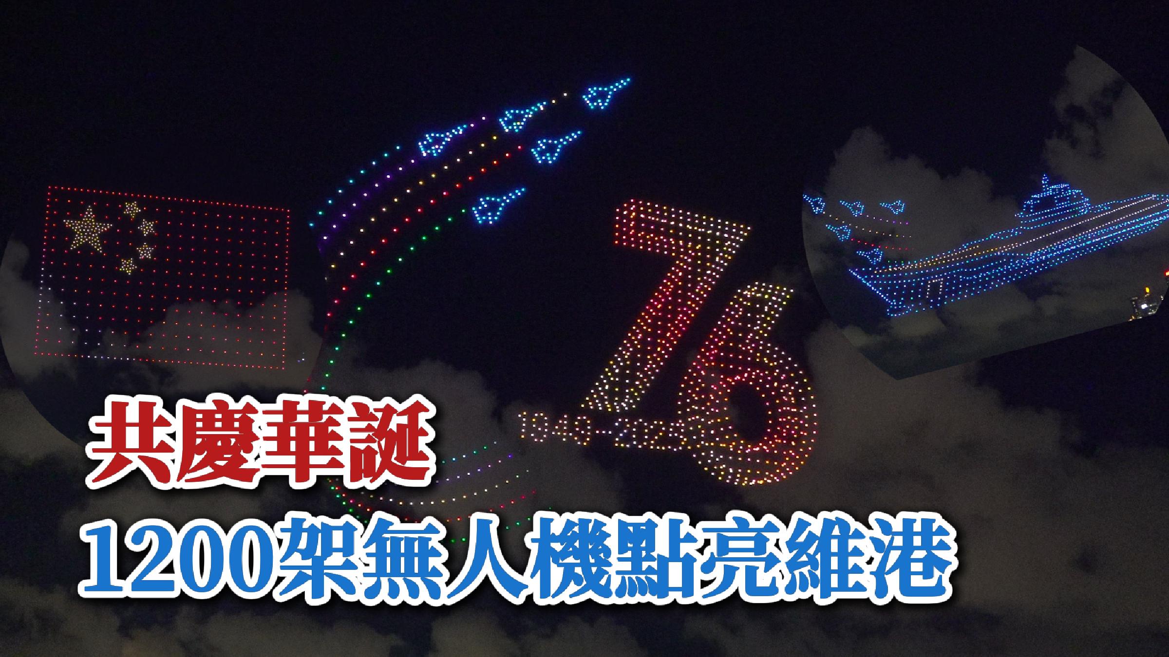 1200架無人機點亮維港慶華誕 軍艦和國旗一出場全場歡呼