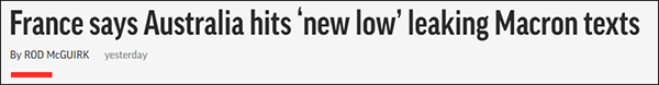 法國駐澳大使:澳大利亞再次“low出新高度”據美聯社11月3日報道,法國駐澳大利亞大使讓-皮埃爾·特博當天表示,澳大利亞政府向媒體洩露兩國領導人私人通信的行爲再次“low出新高度”(new low)。他還嚴厲指責澳大利亞“背後捅刀子”,是一個“不可信任的夥伴”。 澳大利亞媒體1日洩露了馬克龍9月發給莫里森的一條短信。澳媒稱,這條短信是在美英澳三國召開發布宣布組建安全聯盟“AUKUS”、推翻法國潛艇合同前48小時發送的。馬克龍在短信中詢問莫里森:“對于我們的聯合潛艇的野心,我是應該期待好消息還是壞消息?” 這條短信随後被莫里森政府和澳媒視作“法國已經提前知道潛艇合同可能會被取消”的證據。澳媒還援引“了解情況的消息人士”的話稱,關于取消潛艇合同的事情,“馬克龍已經被告知得很清楚,但他隻是不想聽。” 這起“短信洩露”事件顯然激怒了法國方面。法國駐澳大利亞大使特博3日在澳大利亞國家新聞俱樂部發表講話時,措辭激烈地譴責了澳大利亞政府。“無論是在這種做法本身,還是在信任與真相方面,這都前所未有地‘low出了新高度’。”特博說。