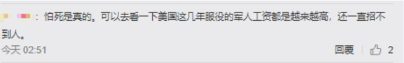 還有網友直指,“(美軍)怕死是真的,可以看下美國的軍人工資越來越高,但招人越來越難。”