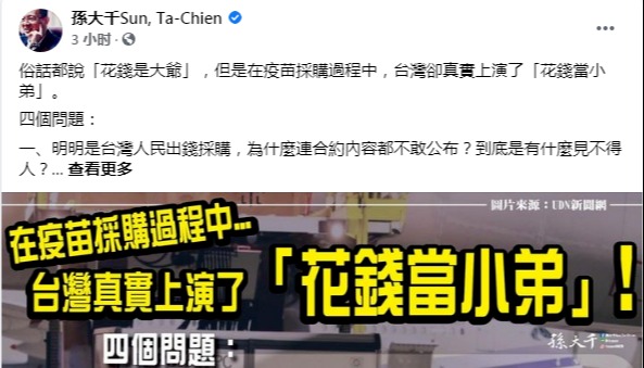 (圖片截自國民黨台北市議員王鴻薇臉書) 國民黨台北市議員王鴻薇也說,沒想到真正買到即期疫苗的,“就是蔡政府自己!” 王鴻薇分析說,現在攤開來看,鴻海、台積電、慈濟一起捐贈的BNT疫苗,有效期限幾乎都是穩定的4個月以上,但是民進黨當局自購的AZ疫苗,有效期卻都是3個半到4個月之間,最新一批甚至只有24天! 王鴻薇質疑:AZ疫苗的保存期限是6個月,這中間的落差到底是怎麽回事? 王鴻薇怒嗆民進黨當局:目前到貨疫苗保存期限少于1個月的,還有9月初日本捐贈的AZ疫苗,有效天數爲26天,“日本不打的捐過來,保存期限都比你們花人民血汗錢買的多2天!” 她還反問,民進黨當局到底向誰購買的AZ疫苗?怎會接受“即期品”?到底是什麽樣的採購合約,會容許賣方讓“即期品”出貨?當局爲何一直不敢公布採購合約? 11月8日,台灣《聯合報》援引業界看法表示,和過去12批AZ相較,這批疫苗有效期明顯縮短許多,應該是今年5月底就已經出廠。 至于民進黨當局買到“即期品”,相關業者均表示并不尋常,因爲無論是合約規定或者向供貨商要求,都不應該會出現這種情況;最有可能的原因,是這批疫苗本來不是要提供給台灣的庫存品。 該報在題爲“政府能力慘輸民間”的專欄文章則提到,台灣民間團體捐贈的BNT源源不絕到貨,迄今已超過訂購數的一半。兩相比較,民進黨當局議約及催貨能力“完敗”。 文章指,AZ是2020年10月簽約,只來了712萬劑;BNT是今年7月才簽約,就已到貨860萬劑。民進黨當局“先發而後至”,敗得一塌糊塗。 【編輯:石欢欢】