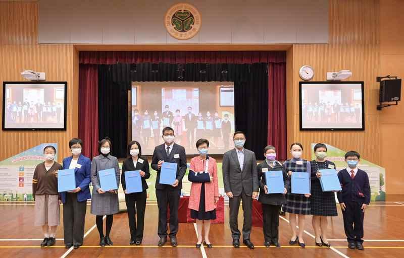 香港特區行政長官林鄭月娥(中)11月10日到訪沙田官立中學,向中小學代表致送《2021年施政報告》資料冊。 香港中通社圖片 上月初發表的《2021年施政報告》是林鄭月娥本屆任內最後一份施政報告,題為“齊心同行 開創未來”,勾劃出香港的發展藍圖。 林鄭月娥向全港約1200所中小學及特殊學校贈送中文及英文版各一套的施政報告資料冊,以幫助學生更好掌握香港未來的社會和經濟發展。資料冊內容包括施政報告、施政報告附篇、北部都會區發展策略報告書等。 當日,林鄭月娥向共約2000名學生介紹施政報告的內容,聆聽學生提出的意見,回應他們的提問。在交流中,很多人關心北部都會區發展,也有人提出有關土地房屋、創新科技、減碳排放、文化藝術,以及“一國兩制”、憲法和基本法教育及國家安全等範疇的意見和問題。 林鄭月娥說,隨著香港國安法的制定實施和特區選舉制度的完善,“一國兩制”重回正軌,香港迎來良好局面,是重新出發、謀劃未來的時候。 林鄭月娥說,北部都會區是施政報告的重點,對推動創科產業及現代服務業發展起關鍵作用,並會加強香港與深圳的合作,未來將提供大量就業機會,並為青年人開拓無限發展空間。 【編輯:丘志彬】