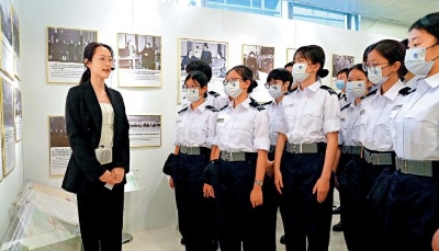 香港中通社11月14日電 香港海關14日帶領“海關青年領袖團”團員參觀位於昂船洲軍營的駐香港部隊展覽中心,協助他們培養國家觀念和國民身分認同。