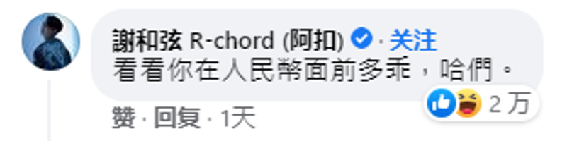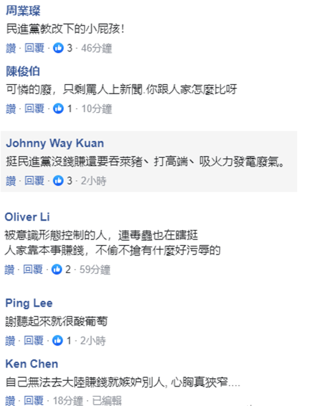 大陸網友亦紛紛為蕭敬騰打抱不平,直指“美元也香,要不謝和弦掙點啊!”“恕我直言,台灣經濟都是靠人民幣支撐的”。