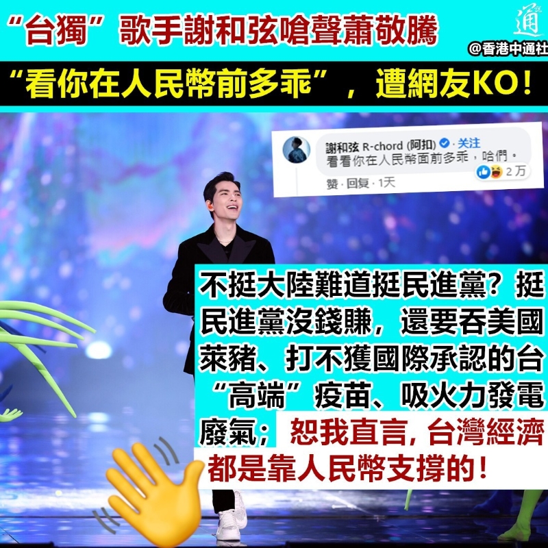 “台獨”歌手嗆聲蕭敬騰“看你在人民幣前多乖”,遭網友KO!分享到: