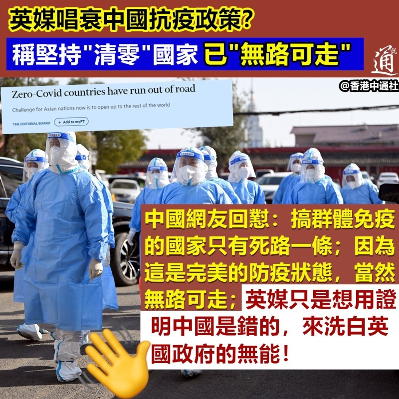 香港新聞網11月17日電 本國抗疫一團糟,英媒還有空唱衰中國的抗疫政策? 英國《金融時報》近日發表《堅持“病毒清零”的國家已“無路可走”》一文,並配了張中國的防疫圖。