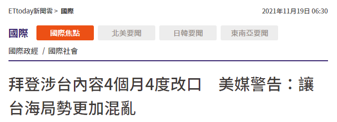 拜登談台灣頻頻“失言改口” 島內網友:早已看穿這一切香港新聞網11月19日電 台灣長期是中美最有可能引發戰爭的議題,雙方相關說法都至關重要,不過近期“拜登卻常亂說話”,讓台海局勢更加混亂。
