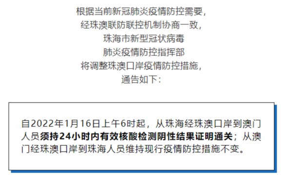 23日凌晨1時起自港入澳須持72小時內核檢陰性證明分享到: