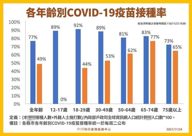 台灣疫苗覆蓋率拿外籍人士充數,奇葩算法引網友吐槽香港新聞網11月26日電 台灣新冠疫苗覆蓋率,外籍人士也算在內? 台灣地區疫情指揮中心日前公布疫苗接種成績,第1劑覆蓋率77.25%,第2劑也即將突破50%。但這看似亮眼的成績,計算方式卻頗為奇葩,采用的分母是“‘內政部’統計台灣人口數”,分子則是“台籍接種人數+外籍人士施打數”,兩者範圍明顯不同,遭外界質疑刻意美化數據。