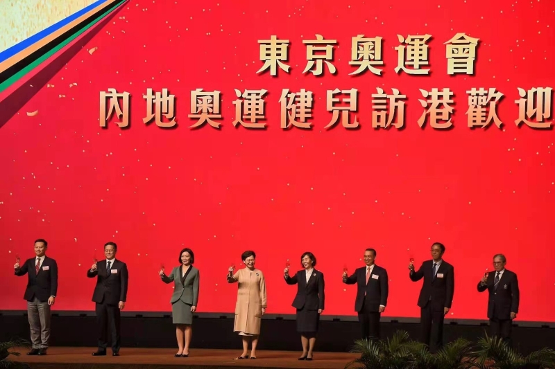 香港新聞網12月3日電 東京2020奧運會內地奧運健兒代表團3日抵港,晚上香港特區政府在會展中心舉行歡迎晚宴。