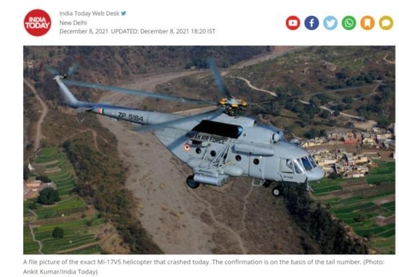 (资料图:印度国防参谋长拉瓦特) 2019年,印度政府首次設立國防參謀長一職,旨在進一步整合陸海空三軍,幫助印度面對現代戰爭。而拉瓦特是首個擔任印度國防參謀長的人。 拉瓦特上個月曾高調宣稱中國是印度的頭號敵人,而非巴基斯坦。他是第一個這樣公開定義中國的印軍最高將領。他宣称如果要與中國作戰,印度將會同時爭取美國和俄羅斯的支持。 值得注意的是這不是拉瓦特第一次遭遇墜機事件。2015年在他還是一名中將的時候,曾遭遇一次直升機墜毀事故並生還,當時他乘坐的是一架印度豹直升機。 印度學者將事故原因扯上中國陰謀論 印媒披露,事故原因可能是大霧導致能見度變低所致。有現場目擊者稱,事故發生時大霧彌漫,能見度低,飛機撞上大樹並起火。一位米-17直升機的前飛行員表示,也不排除技術故障。