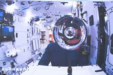 12月9日,中國空間站“天宮課堂”第一課開課,神舟十三號乘組航天員翟志剛、王亞平、葉光富在空間站進行太空授課。圖為航天員展示水球光學實驗。 “天宮課堂”環節,進駐中國太空站近兩個月的翟志剛、王亞平、葉光富現身課室。王亞平帶領同學們參觀他們的太空家園,展示睡房、廚房等,並示範在太空做出失重狀態的動作。 在問答環節中,“天選之子”培僑書院中四學生門睿涵向王亞平提問,“我想知道妳們在天上的生活用水可以循環使用嗎?”,王亞平隨後向同學展示手中的再生水回答,“目前我們空間站有一整套水再生處理系統,能滿足艙內生活用水的平常使用。” 王亞平隨後示範了多項關於水球的實驗,她將乒乓球放進水中,在地面時會浮起的球,失重環境下浮力消失,水的表面張力增加,形成“水膜”,放入摺紙依然保持形狀。 培僑書院校長吳育智在課後表示,很榮幸有“太空教師”帶領全港約300位師生做實驗,令人大開眼界。他認為,“天宮課堂”不僅能引起同學對科技的興趣,也增加師生國民身份認同。 “名師親自給我講課,我感覺很榮幸,在‘天宮課堂’受益匪淺。”門睿涵告訴記者,盡管距離如此遙遠,也跟在教室聽課一樣。他稱,通過這次“網課”對航天更有興趣了,未來更想投入這項學科的研究。 培僑書院十年級學生周安琪告訴記者,“天宮課堂”的實驗很有趣,印象最深的是泡騰片實驗,在地球上做這個實驗,產生的氣泡就會很容易排出水面,但在太空無重力狀態下,產生的氣泡無法輕易排出水球,很多氣泡被困在水球內,十分有趣。 本次授課的四個分課堂分別設於廣西、四川、香港及澳門。這也是今年中國空間站的宇航員第二次與香港學子“天地對話”,再次掀起了中小學生的航天小熱潮。 在培僑書院校園內,到處貼著“太空授課活動—香港分課堂”的海報,教室的黑板上寫滿了“星辰大海的旅程一切順利!”“擔負使命、承載夢想”等祝福語。 教室牆上還掛了3幅畫,有宇航員在太空插上國旗,也有宇航員出艙的畫面。培僑書院副校長吳少偉介紹,這是複印本,畫的正本已經送到中國航空科技集團,跟隨著宇航員前往太空站。 【編輯:石欢欢】