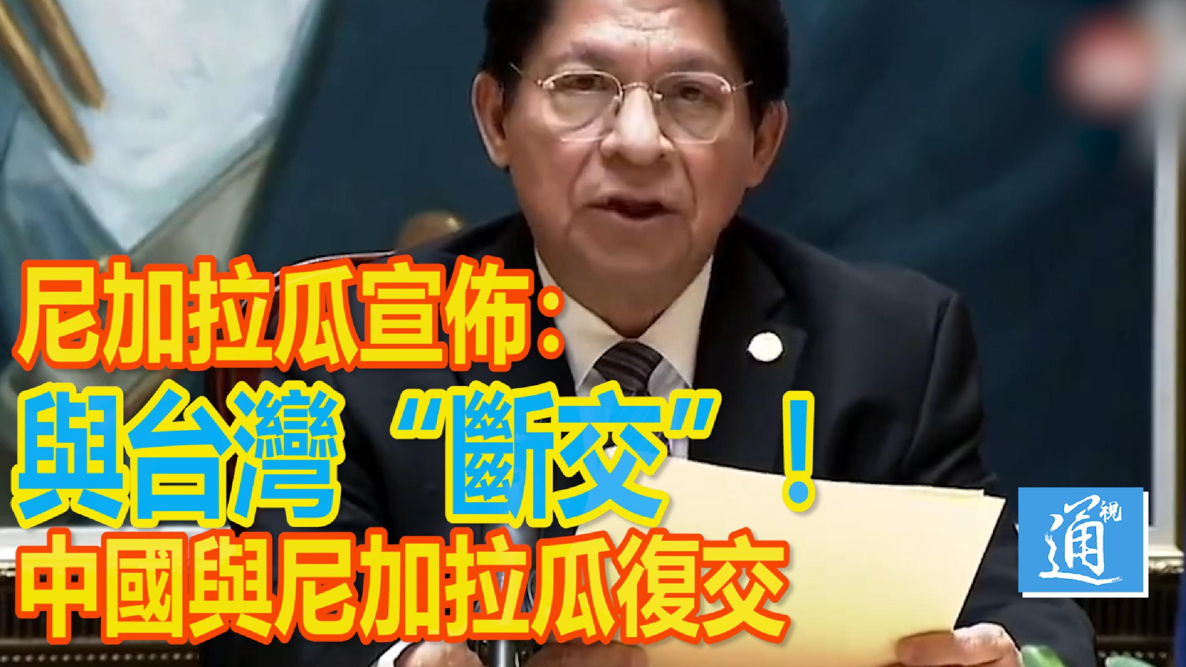 尼加拉瓜宣佈與台灣斷交!尼加拉瓜聲明只有一個中國分享到: