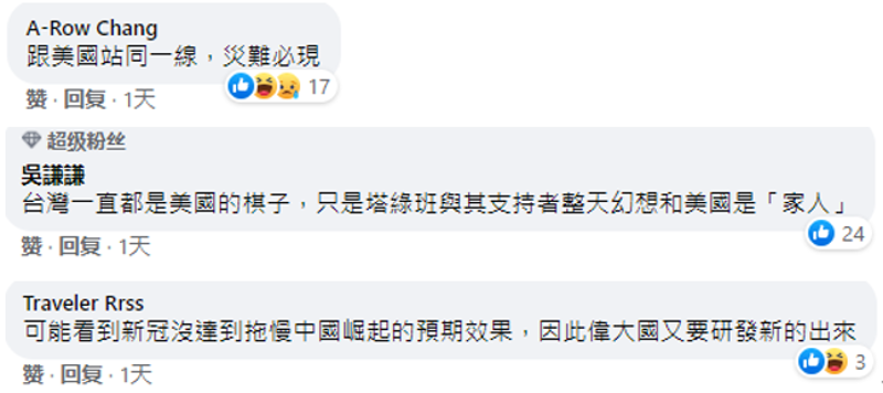 (製圖 劉春) 黃智賢還批評,美國之前已逼著台灣民眾吃萊豬(含有“萊克多巴胺”的豬肉),現在更強行把所謂研究“大規模流行病”的實驗室放在美國在台協會,質問口口聲聲宣稱愛台灣的民進黨當局“為什麼沒有膽子跟美國說不?是要把台灣人當作‘台獨’祭品?” 在社交媒體上,不少島內網友亦讚同黃智賢的觀點,他們紛紛留言怒懟美國所謂“挺台法案”:“(美國)要在台灣放毒嗎?”“(搞個)德特里克堡的分號”“跟美國站同一線,災難必現”! 還有島內網友眼見台灣從吃萊豬到建實驗室,多個環節都慘遭美國擺布後,無奈地說:“台灣一直都是美國的棋子,只是塔綠班(諷刺民進黨當局的說法)與其支持者整天幻想和美國是‘家人’......”