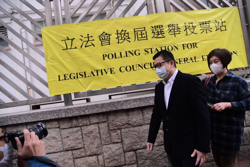 投票後,鄧炳強表示,此次新的電子取票流程非常暢順,排隊等待幾分鐘便進入投票站,幾分鐘已投票完畢,希望合資格選民盡快投票,選出愛國愛港、為香港市民服務的議員。(記者 王豐鈴)