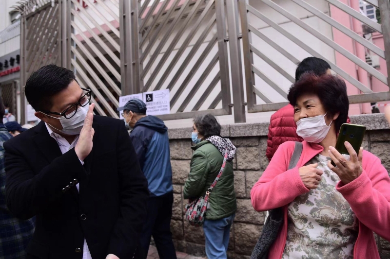 香港新聞網12月19日電 香港立法會選舉12月19日上午8時半開始投票,全港設逾600個投票站。當日8時半,香港特區政府保安局局長鄧炳強已來到位於天光道24號地下獻主會聖馬善樂小學的投票站,他於投票現場慰問長者,並排隊入場投票。