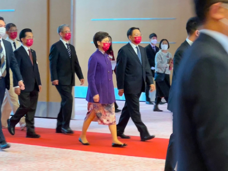 林鄭月娥表示,寄望在港的內地企業,幫助香港積極融入大灣區,未來能為香港青年提供更多到內地實習、工作機會,助力提升香港青年對國家的向心力。