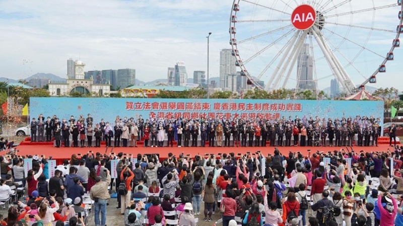 香港中通社12月23日電題:香港花車巡遊慶選舉順利舉行 市民憶“黑暴”感恩社會穩定 香港中通社記者 張明臻 為慶祝香港立法會選舉圓滿結束,香港廣東社團總會、香港福建社團聯會等26個香港省級同鄉社團23日合辦花車大巡遊活動,多名候任議員出席,與參與活動的市民交流。 當天上午,在香港中環著名地標摩天輪下,逾千名市民高舉“新選制,新立會,新未來”的宣傳牌,手舉香港區旗與祖國國旗。不少女士特穿旗袍前來,想在維港邊著名的摩天輪下記錄這見證歷史的時刻。 市民陳小姐獨自前來,她請記者幫忙打卡拍照。她認為,可以在香港參加這樣的活動很感動,2019年“黑暴”時,出門都要小心翼翼,現在能舉辦這樣的活動,代表社會已經穩定下來了。