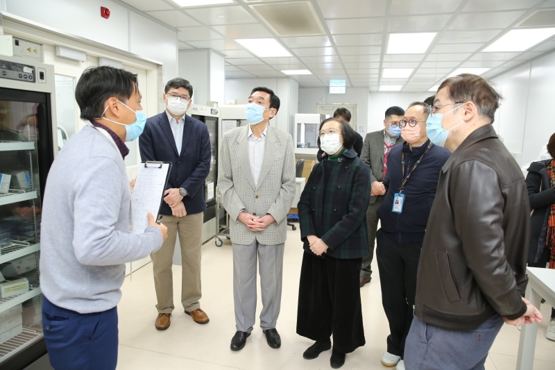 12月27日,香港特區食物及衛生局局長陳肇始教授(右三)、醫院管理局(醫管局)主席範鴻齡(左三)及醫管局行政總裁高拔升醫生(左二)視察北大嶼山醫院香港感染控制中心的化驗室,了解加強化驗室檢測的安排。 香港中通社圖片 陳肇始指出,奧密克戎很短時間內已在全球蔓延,聖誕期間回港人士增加,但估計到新年才是高峰,回港人士多,確診個案亦會相應增加。
