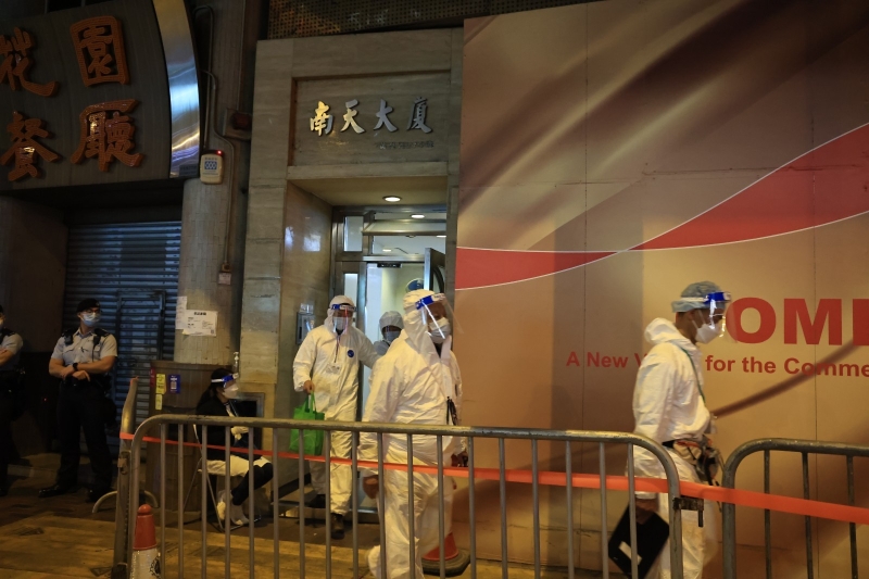 資料圖 1月1日新年伊始,港人歡度元旦佳節,社區疫情壞消息傳來,一名28歲女機組人員初步確診,當晚,她於北角、東涌居住的兩座屋苑連夜封區強檢。