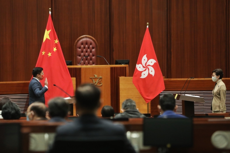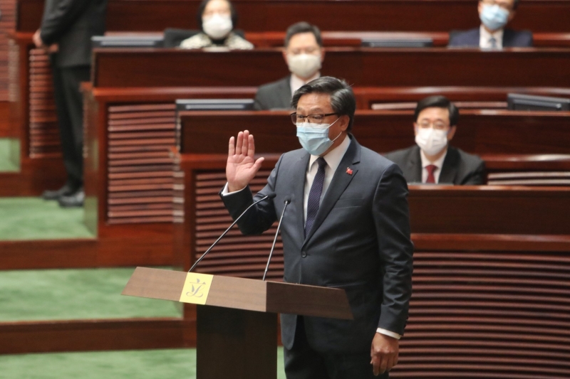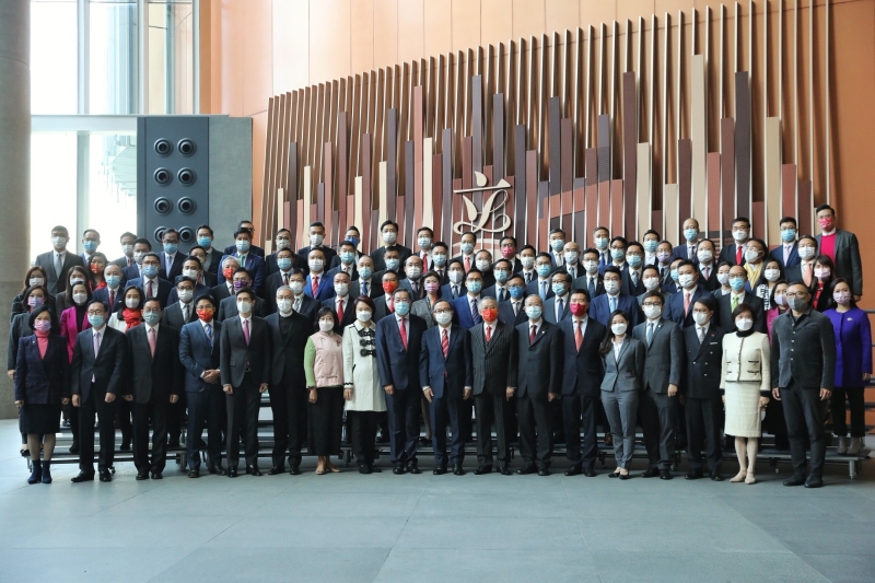 完善選舉制度下的首場立法會選舉去年12月19日投票,90名立法會議員中背景“五光十色”,除了成功連任的傳統政黨議員外,有將近70%的“議員新丁”加入了立法會。 當中,有21名立法會議員是港區全國人大代表或政協委員,另有8名是省級或直轄巿政協,整體占議會近三分一。“議會新丁”中,還不乏具一定學術水平的智庫學者、大學教授。 相比起上一屆立法會議員宣誓時穿短袖、拉橫幅的荒唐喧鬧現場,本次宣誓有不少亮點:首次由特首親自監誓、首次在宣誓儀式上奏唱國歌、首次在國徽下宣誓、首次宣誓人必須穿商務服裝、首次全場戴口罩下宣誓。