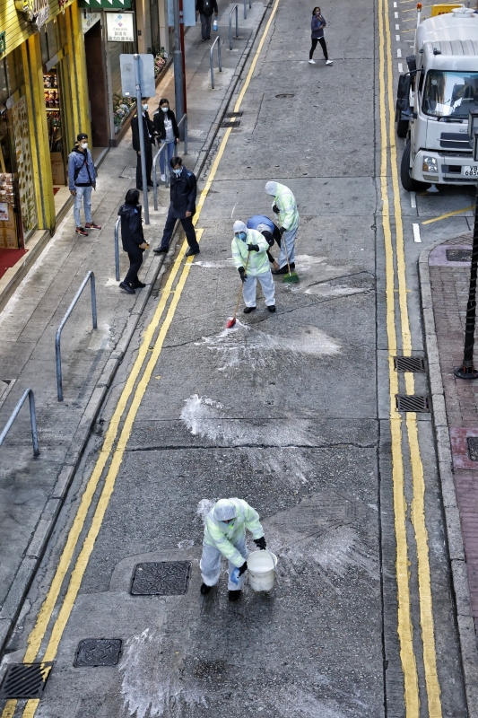 1月5日,香港政府宣佈於上午約7時30分完成對銅鑼灣高士威道16-22號高威樓的封區檢測,沒有發現陽性檢測個案。(香港中通社記者 曹文毓攝)