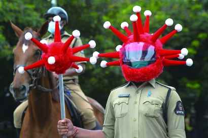 印度海得拉巴警員戴上冠狀病毒造型的頭盔,希望提高人們防範意識 新華社圖片 塞浦路斯共和國總統新冠肺炎科學咨詢委員會成員、塞浦路斯大學生物技術和分子病毒學實驗室主任雷盎迪沃斯•考斯瑞吉斯領導的研究團隊一直在追蹤該國新冠病毒變異情況,團隊在對1377個樣本進行測序後,發現有25人感染了這種新毒株,其基因序列雖與德爾塔毒株接近,卻有10個奧密克戎毒株的特有變異。同時,這25名感染者中有多達14人為住院患者。 考斯瑞吉斯稱:“目前存在奧密克戎和德爾塔毒株的共感染情況,我們發現了一種二者重組的變體。”而分析表明,與未住院患者相比,這種變體在住院患者中更為常見。團隊已將該毒株基因組上傳到GISAID國際數據庫中,將持續觀察這種變體是否更具致病性或傳染性,或是否會流行。 不過,該毒株的發現除引發廣泛擔憂外,也存在一些爭議。英國倫敦帝國理工學院傳染病學博士後研究員托馬斯∙皮考克在“推特”中稱,有一些跡象顯示,所謂“德爾塔克戎”有可能是基因測序受到汙染的結果。 研究表明,重組在冠狀病毒中非常常見,並在新冠病毒進化中發揮了重要作用。2020年7月,美國杜克大學、洛斯阿拉莫斯國家實驗室等機構研究人員在《自然》雜志發文稱,新冠病毒很可能通過重組獲得感染人體的能力;2021年8月,美國橡樹嶺國家實驗室研究人員發表預印本論文稱,重組大大加速了新冠病毒新變體的出現。 總之,監測新冠病毒基因組以獲取重組證據具有重要意義,既可以深入了解病毒,也可以在 “超級毒株”重組出現時提供早期預警。 【編輯:馬華】