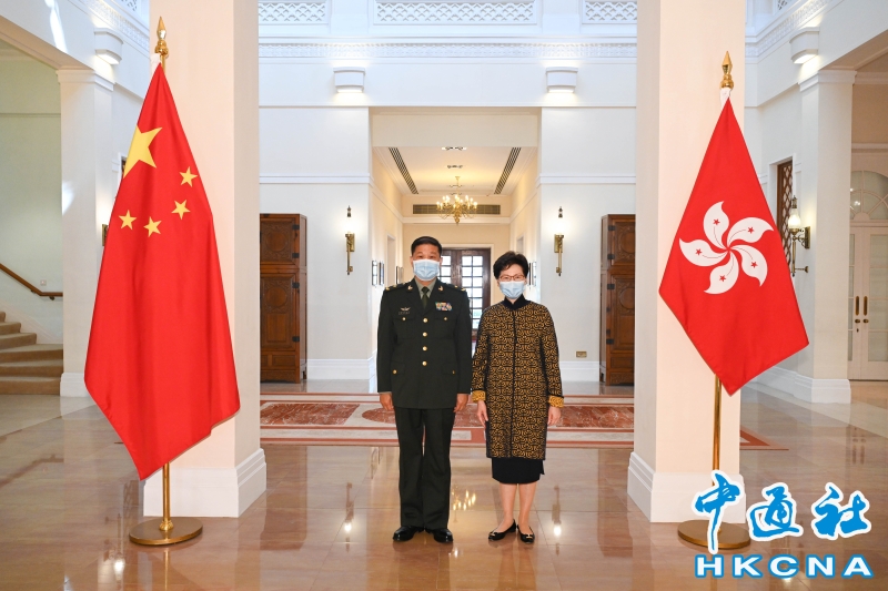 特首林鄭月娥與駐港部隊司令員彭京堂少將會面