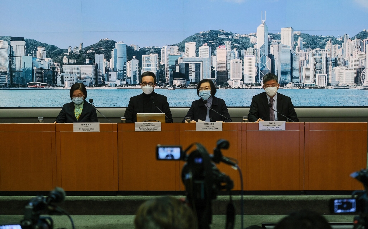 (香港中通社記者 謝光磊攝) 這被視為香港疫情受控的一個信號。應是專家對壓制疫情擴散頗有信心,才會有此“大膽”提議! 袁國勇還呼籲香港市民配合強制檢測和防疫,認為有望在新年前解除防疫限制。 特區政府專家顧問、港大醫學院院長梁卓偉表示,此次港府收緊防疫限制措施較快且到位。新一輪社交距離措施能大幅降低奧密克戎變種病毒的即時傳播率,避免疫情“海嘯式”暴發。 他分析稱,過往數據顯示,在沒有任何防疫措施下,每名感染奧密克戎毒株者可傳染6至10人,現時國泰機艙服務員母親(第12754宗)傳染7人,經追蹤及隔離,群組中感染者僅再傳染約2至3人,顯示港府措施初步有效。