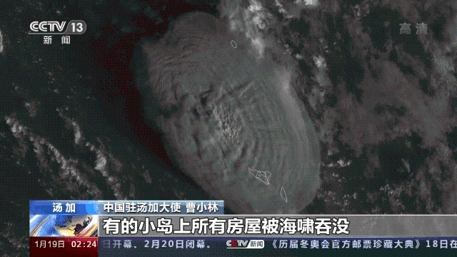 央视新闻截图 曹小林介紹說,1月15日,湯加海底火山爆發并引起連鎖的海嘯和火山灰災害。由於火山和海嘯造成通信中斷,道路受阻,湯加政府統計災情進展不是很順暢。1月18日湯加政府通報了最新的災情,首都所在的主島西側大片房屋被摧毀,許多公民被安置到避難所。在距離火山爆發比較近的第三大群島災情更嚴重,有的小島上所有房屋被海嘯吞沒,具體傷亡情況還在統計中。火山灰污染了整個國家的水源,所有家庭的飲用水都面臨困難,整個國家的農作物遭受毀滅性打擊。