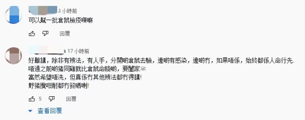 網絡截圖 關於如何處理倉鼠;有人建議設立付費倉鼠檢疫處,獸醫發出證明後可領回家;有人認為若倉鼠有上呼吸道感染病徵應及時就醫,甚至有網友建議為倉鼠接種疫苗。 香港多位立法會議員亦關注事件。立法會議員田北辰認為,既然倉鼠有播毒風險,政府為何不強制市民交出倉鼠。 民建聯立法會議員張國鈞理解愛護動物人士對決定感到不滿,但也理解政府希望防患於未然的初衷。 關於如何處理一時難判對錯。香港曾出現禽流感大規模殺雞、野豬擊人被人道處理等爭議;丹麥也曾撲殺多達1700萬隻水貂。倉鼠作為小寵物,也引發了更多貓奴狗奴的共情。 香港醫務委員會執照醫生協會副會長唐繼昇對香港中通社記者表示,本次事件很可怕,可能意味著病毒突破人畜傳播的屏障,政府有必要快速出手。 唐繼昇認為,特區政府必須盡快查清病毒傳播的來龍去脈,同時要將歸還倉鼠上升至法律責任,避免有個案走漏。 香港寵物業商會副會長陳雅芝則認為,政府並無要求為進口倉鼠等做新冠病毒檢測,希望當局增設相關檢測,還小動物一個公道。(李明珠) 【編輯:李明珠】