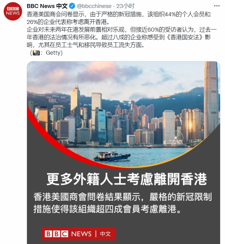 BBC炒作“因香港防疫嚴格,外企準備離港”,被網友懟了!分享到: