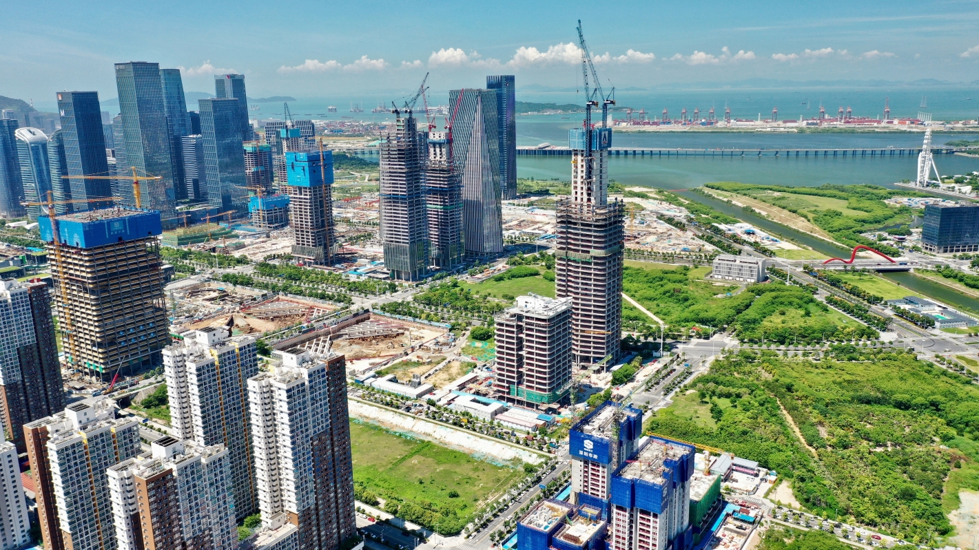 前海深港現代服務業合作區建設風貌 香港中通社圖片 高水平規劃建設深港口岸經濟帶,積極對接香港“北部都會區”發展策略,拓展深港合作新空間。