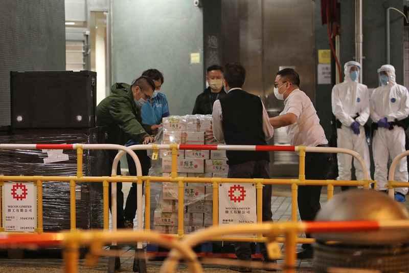 圖為特區政府派出多輛貨車運送膳食及防疫物資支援居民。(香港中通社記者 謝光磊 攝) 當天傍晚,香港特區政府食物及衞生局局長陳肇始會見傳媒時表示,此舉是由於群組涉超級傳播,風險極高,需要果斷行動,避免潛在患者將病毒帶入各區、觸發新一波群組。根據疫情發展,政府未來不排除對葵涌邨採取其他行動,亦希望此次盡快處理,能讓居民在農曆新年前,恢復正常生活。 她強調,現階段香港檢疫設施足夠,若疫情嚴重,隨時可能再有其他大廈暴疫,會有密切接觸者同其家居接觸者需要隔離,因此要準備一定數量檢疫設施備用。 衞生署衞生防護中心總監徐樂堅透露,暴發源頭來自此前感染的一宗奧密克戎個案,即巴基斯坦籍婦人,其染疫丈夫曾到葵逸樓垃圾房回收物資,與清潔工人接觸。清潔工已初步確診,並曾每日都去大樓不同樓層清潔,很大機會是在工作期間接觸居民、傳播病毒。 他又指,大廈現群組傳播,並非來自樓宇結構性問題,因此居民毋須撤離。但疑有超級傳播者,預計還將陸續發現更多確診病例。 房屋署助理署長陸子慧指,大廈居民家居隔離期間,樓下會設有臨時檢測站供居民檢測,亦會安排三餐送至居民家中。(完) 【編輯:丘志彬】