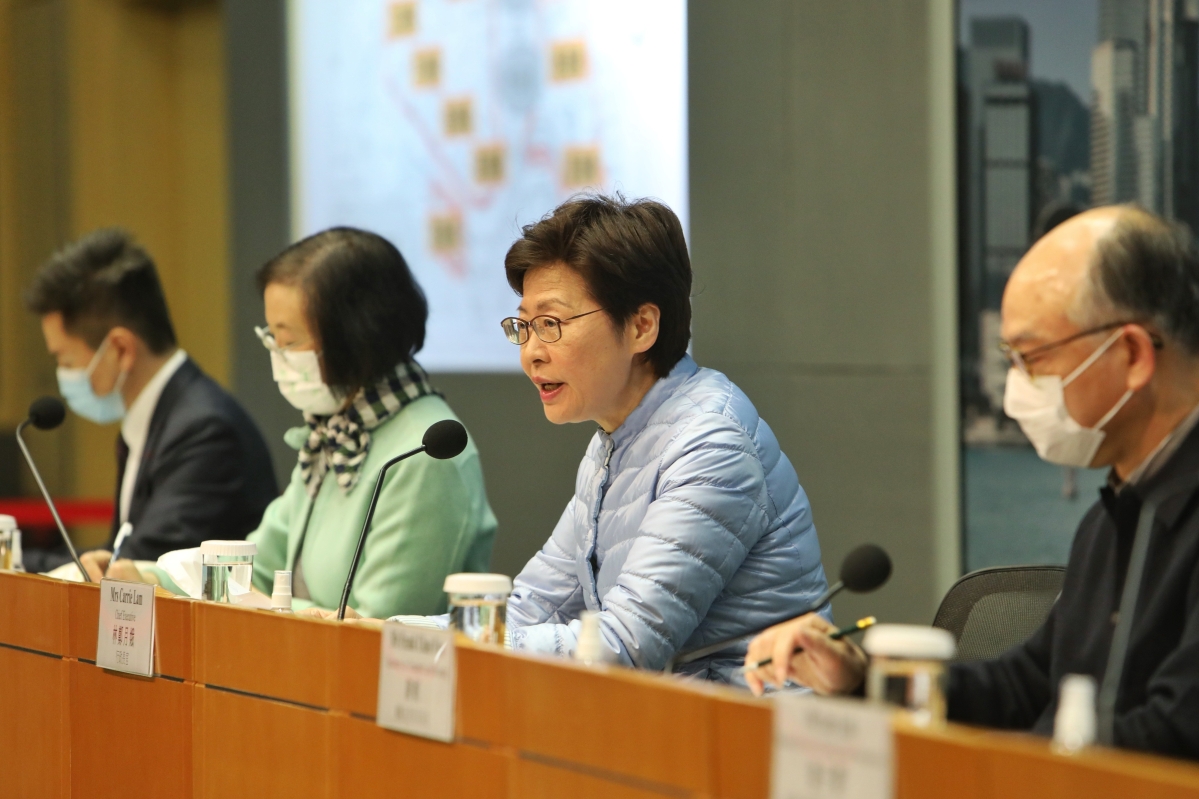 香港特區行政長官林鄭月娥指,奧密克戎傳播力強,尤其此次葵逸樓暴疫更顯示,新變種病毒令確診人數呈“幾何倍數上升”,已實施最平衡各方考慮、最能夠控制疫情的整體方案,並成功保護香港醫院系統免於崩潰。(記者 王豐鈴)