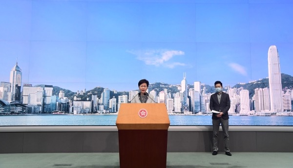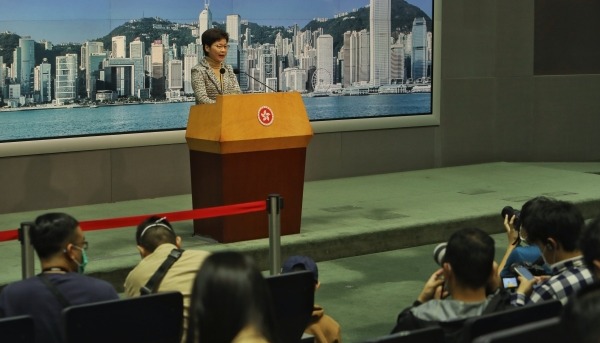 香港特首林鄭月娥(香港中通社記者 謝光磊 攝) 當日,她在出席行會前會見記者時說,在公佈前不宜透露個別官員情況,但至今仍維持對民政事務局長徐英偉感到失望的看法。 【編輯:王軼南】