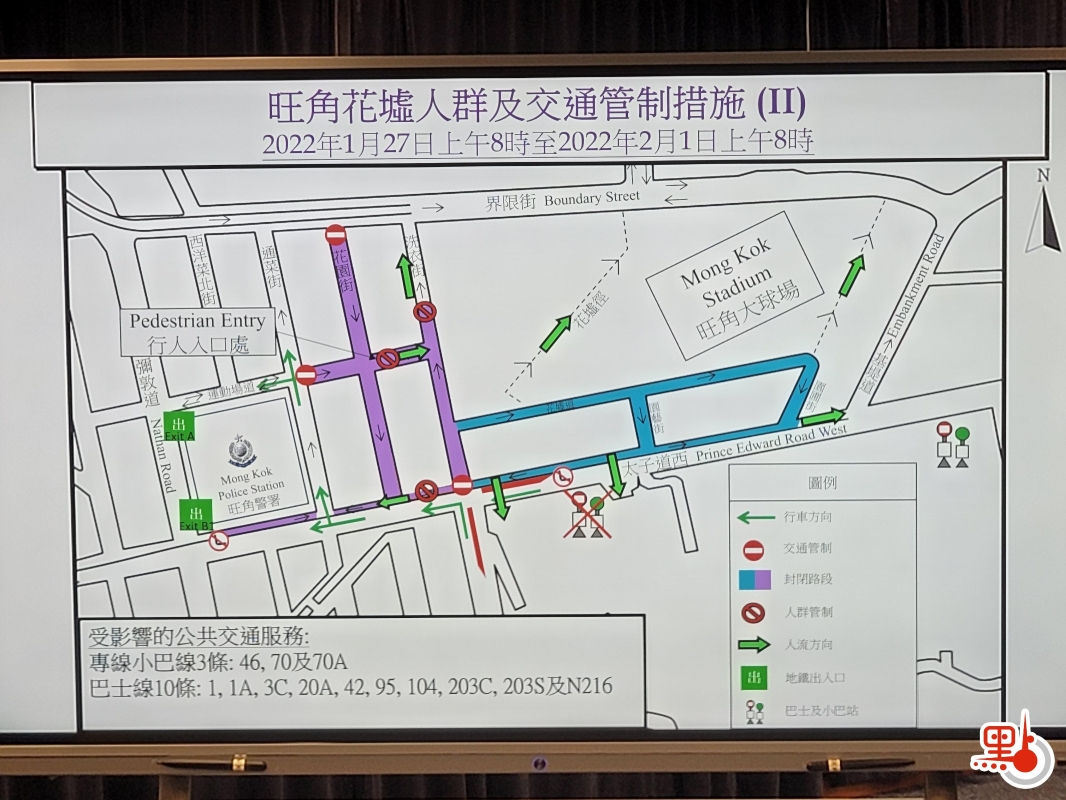 (圖源:點新聞) 人流密集時需由運動場道/花園街交界進入 其他路口只准離開 如果想進入花墟買年花,就要留意人群管理安排!警方指當人流正常時,市民可以從花墟道、園藝街、園圃街和太子道西支路進入花墟;當人流密集時,市民則需要由運動場道及花園街交界進入花墟,其他路口只准離開。另外,警方會視乎情況,安排太子站A出口及B1出口“只准出不准入”,方便市民進入花墟。 受影響巴士站 另外,該區部分巴士站將會封閉,途經的小巴線及巴士線需要改道。受影響巴士站包括太子道西近協和小學巴士站,將於1月30日下午3時至2月1日上午7時封閉;太子道西近協和小學的小巴及巴士站亦需封閉。 受影響3條小巴線和10條巴士線 實施特別交通及人流安排措施期間,3條小巴線和10條巴士線需要改道,受影響轉線小巴包括46、70、70A,以及巴士線1,1A、3C、20A、42、95、104、203C、203S及N216。有需要乘搭以上小巴及巴士線的市民,可以沿太子道西向東行,在近拔萃男書院位置上車。 香港警方籲高峰時間避免出入 香港警方西九龍總區高級警司黃志威24日在記者會上指,去判斷是否人流繁忙的大原則是不希望花墟內過分擠擁,避免造成公眾危險及降低染疫風險。黃志威又呼籲市民不要在高峰時間進入花墟,望人流達到“可控”的水平。被問到會否因節日放寬限聚令處理,他表示會依法例及實施情況執行,又指希望市民自律。警方提醒車主切勿在上述位置違例泊車或逗留,警方將不作出警告,果斷發出告票及拖車。 【編輯:王瑶】