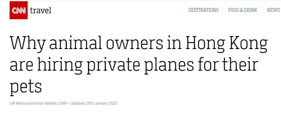 香港新聞網1月27日電 近期香港暴發第五波新冠疫情,港府迅速採取了嚴格的防疫措施以遏制疫情擴散。沒想到,美媒CNN(美國有線電視新聞網)放著本國日增近百萬的“躺平”政策不抨擊,反倒從迷之角度陰陽怪氣起了香港的防疫政策…… 近日,CNN發表《為什麼香港人為他們的寵物租用私人飛機》的文章,宣稱在香港嚴格的防疫措施下,部分嚮往所謂“自由”的人士為了能帶寵物一起離開,不惜花高價讓寵物搭乘私人飛機。 文章一開始就渲染稱,為寵物提供私人飛機服務原本是權貴人士才能負擔的,但在2022年的香港,普通市民也開始考慮這筆“龐大開支”。對於原因,文章就“指責”是因為香港實施了世界上“最嚴格”的防疫措施。 文章還說,由於該措施帶來極大“不便”,在2021年,“40%接受調查的外籍人士考慮永久離開香港”,但鑒於商業航空公司的關於寵物托運的限制,使得這部分想要帶著寵物一起離開的人不得不將目光投向私人航空公司。